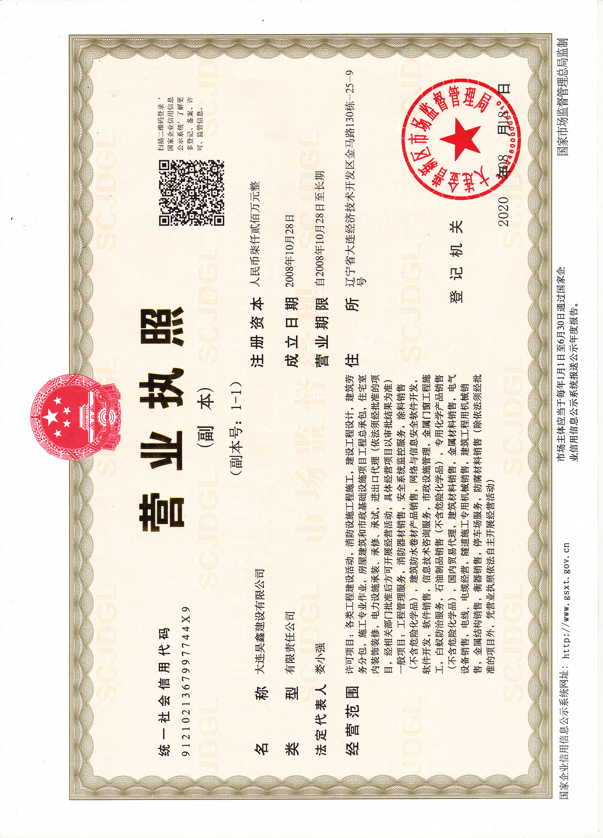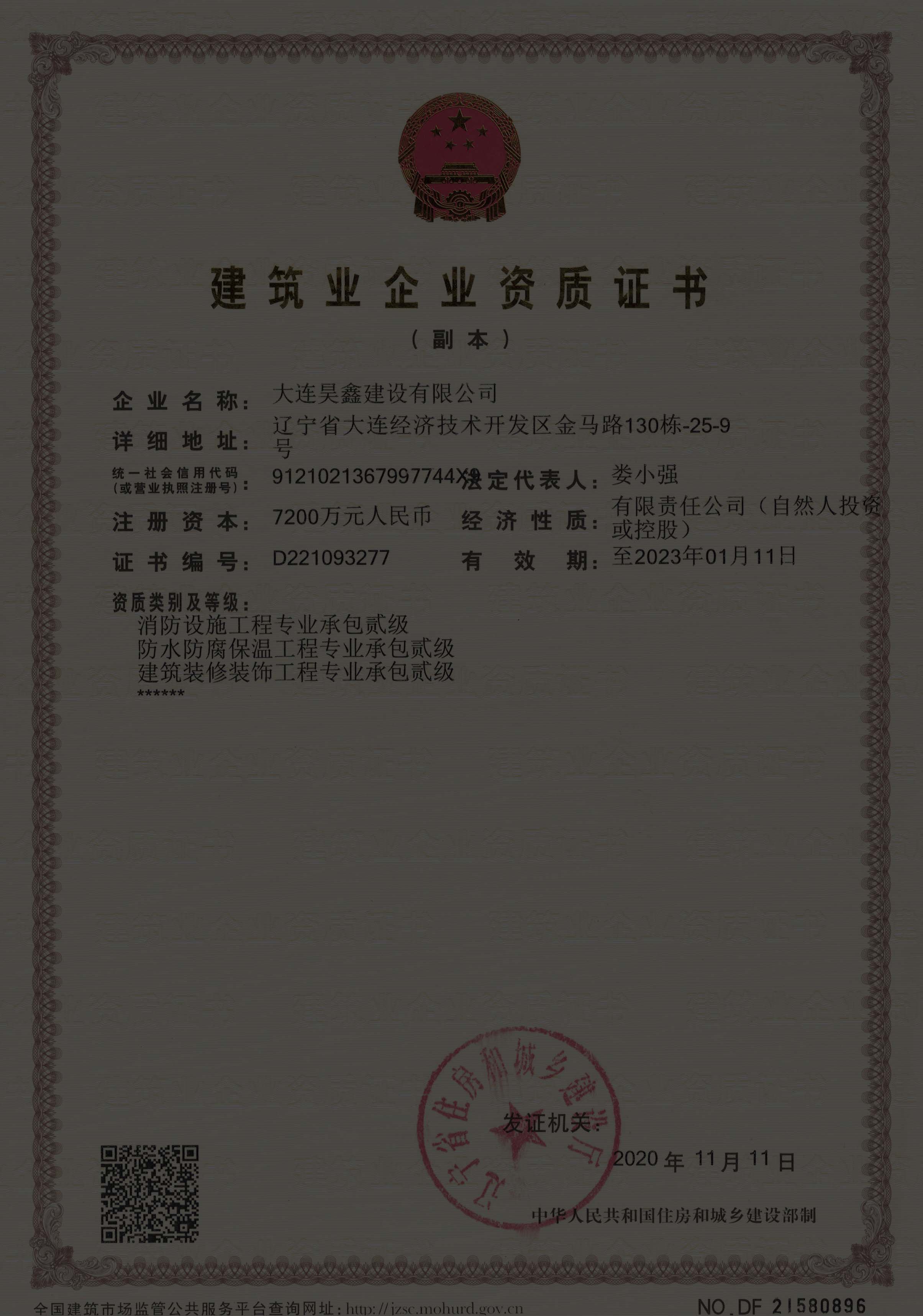 更名大連昊鑫建設(shè)有限公司