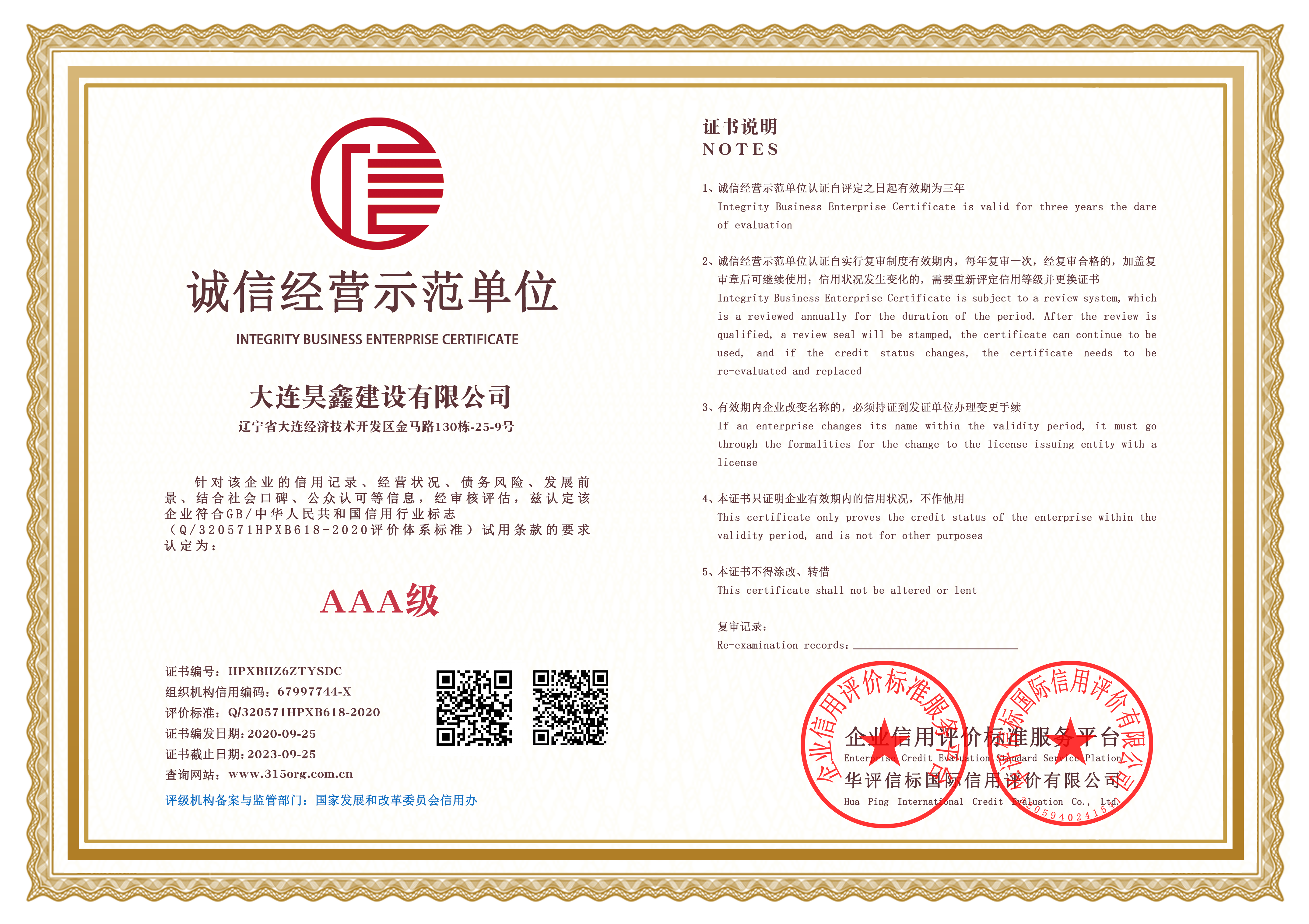 AAA企業(yè)信用等級(jí)